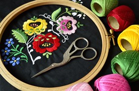 베이징 자수(京绣)는 명, 청 시기에 번성하여 궁정 장식과 복식에 주로 사용되었으며, 까다로운 재료 선택 과정과 우아한 격조를 자랑한다. 역사적으로 베이징 자수로 제작한 복식은 주로 궁정의 황제 및 후작에게 봉납되었기 때문에, 베이징 자수는 궁수(宫绣)라고도 불리며, 옌징바줴(燕京八绝) 중 하나로 꼽힌다.