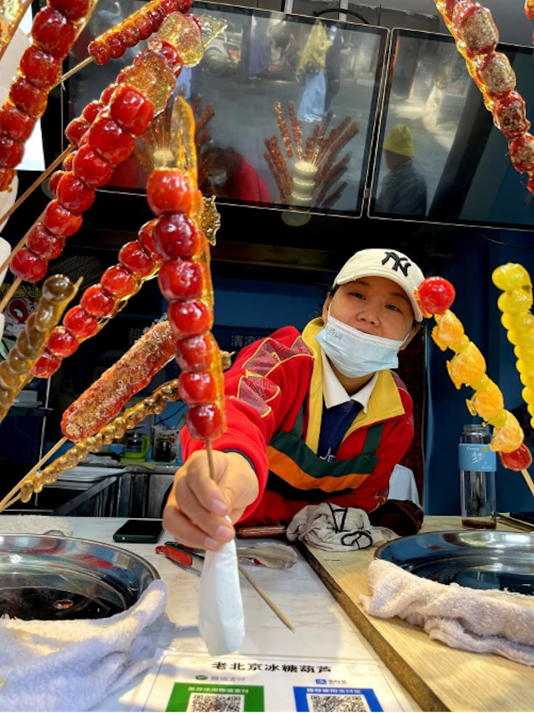 옛 베이징의 탕후루(糖葫芦)는 베이징의 전통 간식으로 붉은 열매와 투명한 얼음사탕에 사람들이 군침을 흘린 만큼 식욕을 자극한다. 새빨간 탕후루는 베이징 생활에 대한 사람들의 아름다운 추억을 담고 있다.