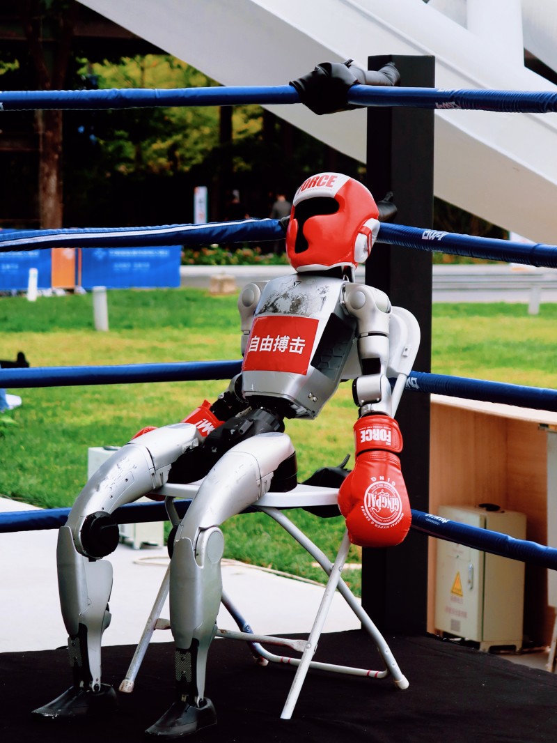 경기 중, 휴식을 취하는 레드팀 로봇 [사진: Karistina Zagame(미국)]