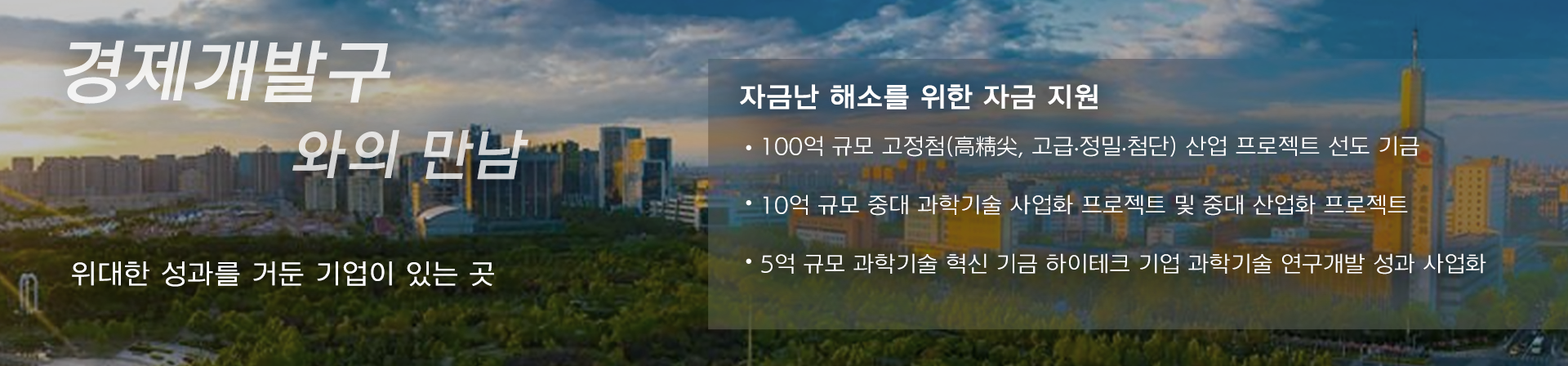 경제기술개발구는 차세대 정보기술 산업, 신에너지 및 스마트 커넥티드카 산업,