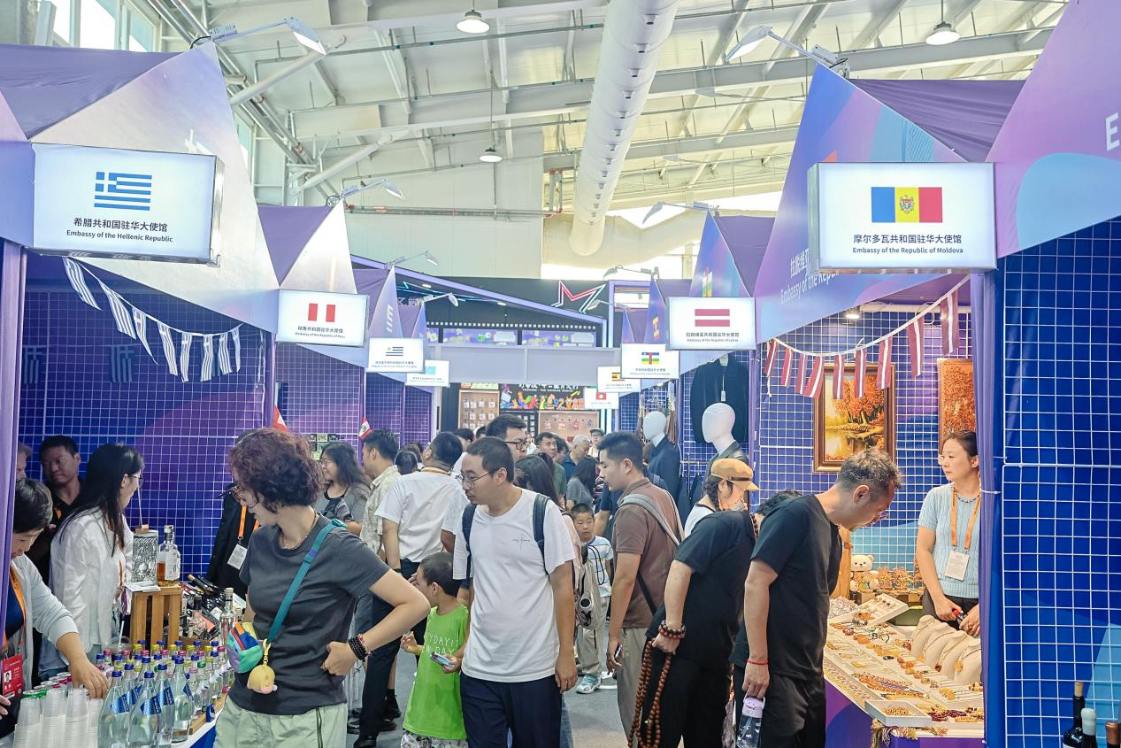'다채로운 세계' 전시구역에서 특색 상품을 고르는 관람객