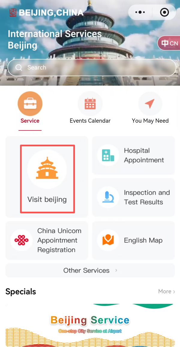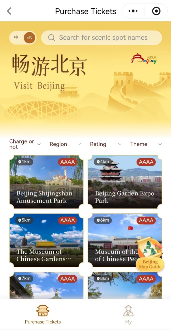 시민과 관광객은 '징통' 위챗 미니 프로그램의 홈페이지에서 'Visit beijing'을 클릭한 후 'Purchase Tickets' 티켓 구매 페이지에 들어가거나, QR 코드를 스캔하여 플랫폼의 티켓 구매 페이지로 이동할 수 있다.