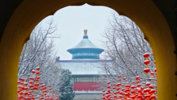 봄눈이 내린 후 톈탄공원(天坛公园)은 마치 한 폭의 아름다운 그림처럼 베이징의 역사적 깊이와 인문적 분위기를 뽐냈다.