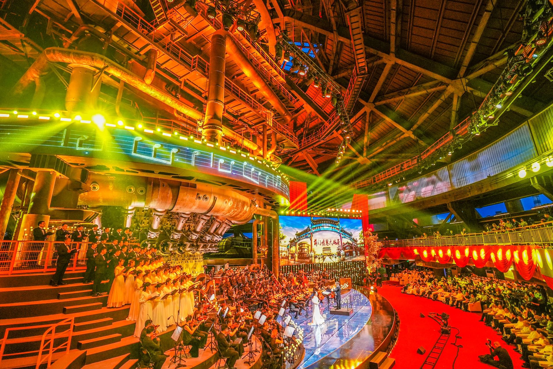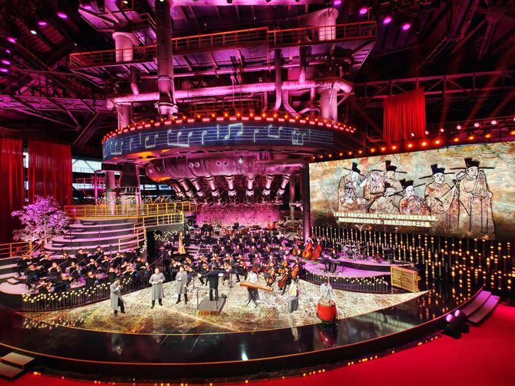 개막식에서 독창적인 민악 교향악인 <도성원기(都城源起)>를 합주하는 베이징교향악단과 베이징민족악단