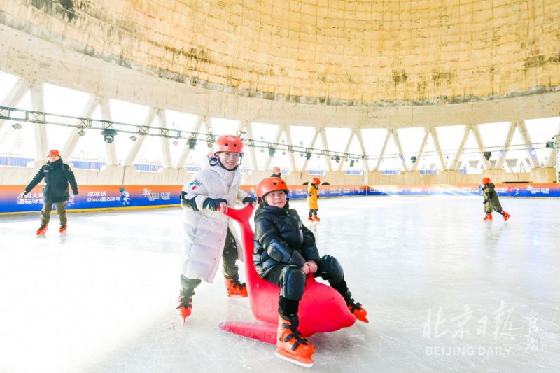 서우강 스키점프대 아래의 서우강 빙설후이(冰雪汇)에서 시민과 여행객들이 빙설 스포츠의 즐거움을 만끽하고 있다.