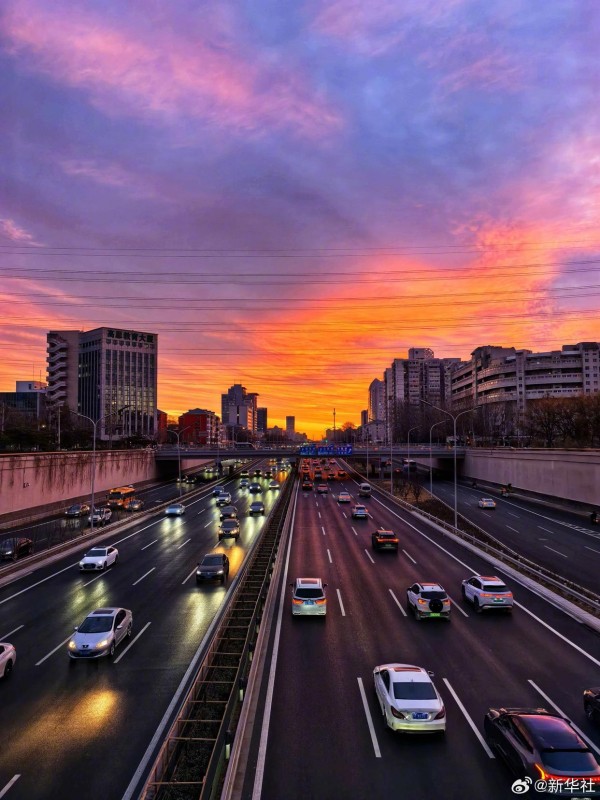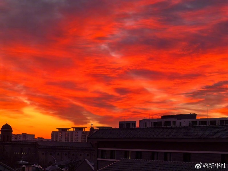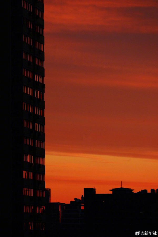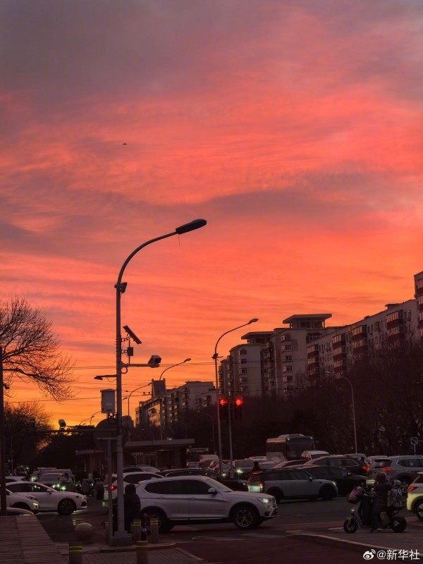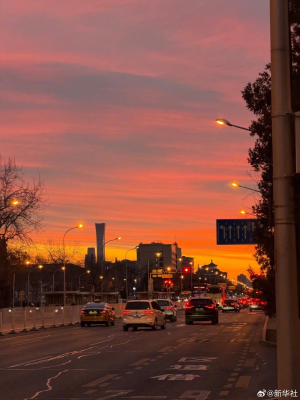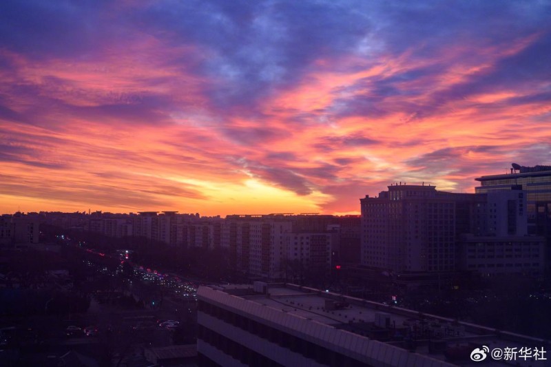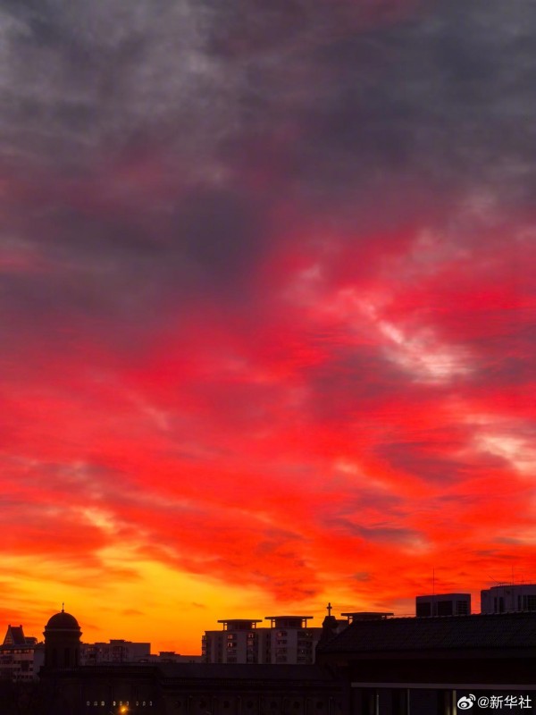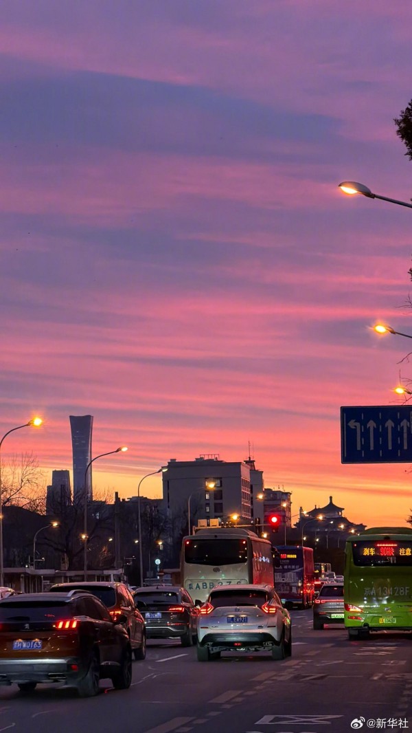 1월 7일 이른 아침, 베이징 하늘에 분홍빛과 금빛이 어우러진 화려한 아침 노을이 펼쳐졌다. 몽환적인 아름다움을 뽐내는 베이징의 아침 노을을 며 다함께 힐링해 보자.