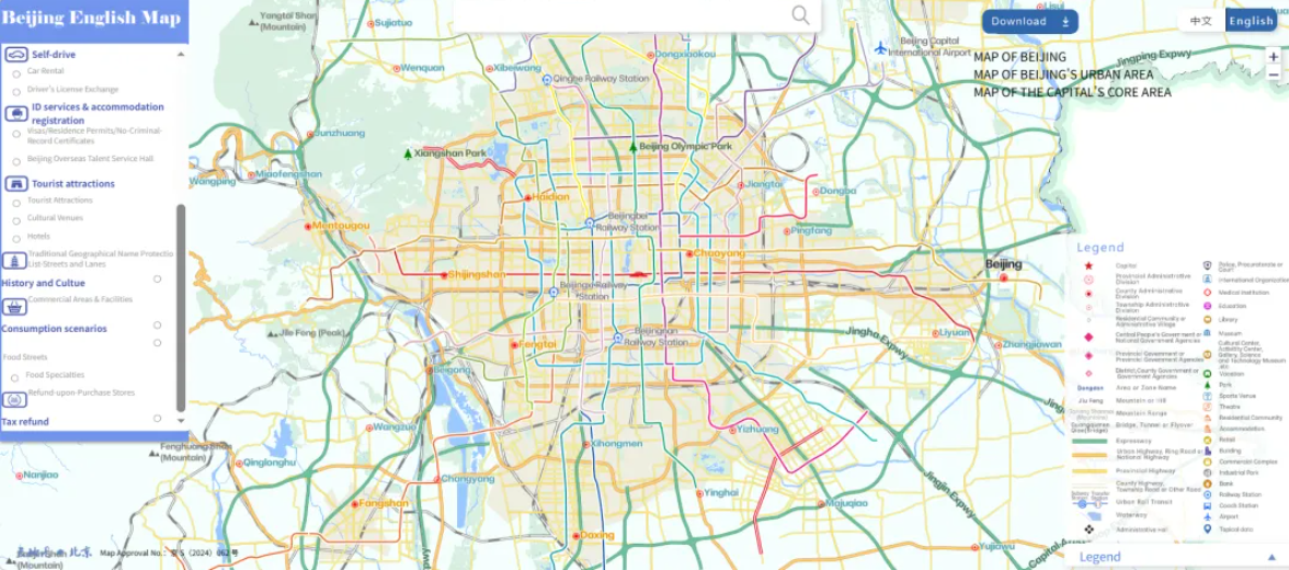 베이징시 영문 지도(2025판)가 최근 발표됐다. 이번에 발표된 신규 지도(웹사이트: https://beijing.tianditu.gov.cn/EMap/1/1/EMap.html)는 2025년말 업데이트 버전이다.