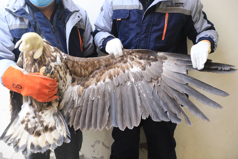 2023년 1월 25일, 베이징시 야생동물구조센터에서 검사 및 치료를 받는 흰꼬리수리. [사진: 베이징시 야생동물구조센터 제공]