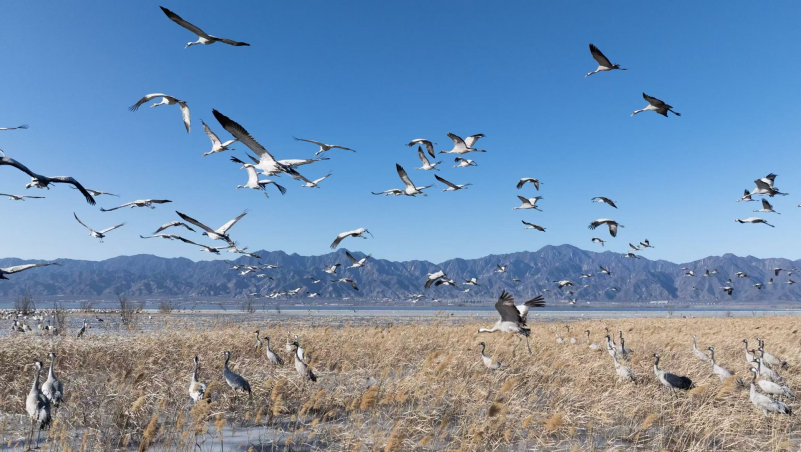 최근 대량의 검은목두루미와 물오리 등이 옌칭구(延庆区)에 위치한 베이징 예야후 국제중요습지(野鸭湖国际重要湿地)에 잇따라 도착했다. 옌칭 예야후 국제중요습지는 베이징시에서 가장 큰 습지 자연 보호구역과 동아시아-호주 철새 이동 경로의 중요한 기착지이다. 최근 몇 년간 생태 환경의 개선과 보호 노력이 강화됨에 따라 이곳은 많은 희귀 조류의 서식지이자 이동 중간 기착지가 되었다.