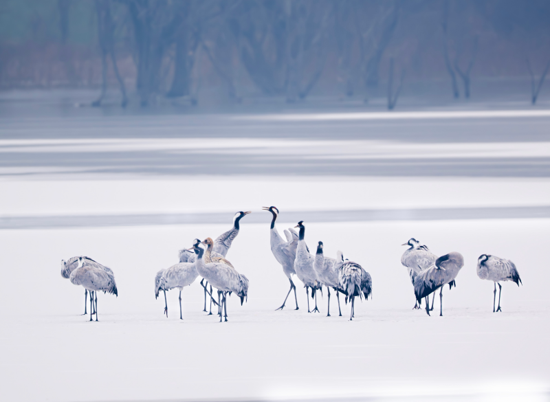 대형 섭금류(긴 다리로 물가를 돌아다니며 생활하는 조류)에 속하는 검은목두루미는 여름에 북방 지역에서 번식하고 겨울에 월동을 위해 남쪽으로 이동하는데 베이징이 바로 그 이동 경로에 있다. 하지만 이번처럼 평원 지역의 저수지 빙판 위에 대규모로 나타난 것은 매우 드문 일이다. 전문가들의 분석에 따르면 이 현상은 최근 날씨 변화, 이동 경로 미세 조정, 그리고 지역 생태 환경의 지속적인 개선과 관련이 있을 수 있다.