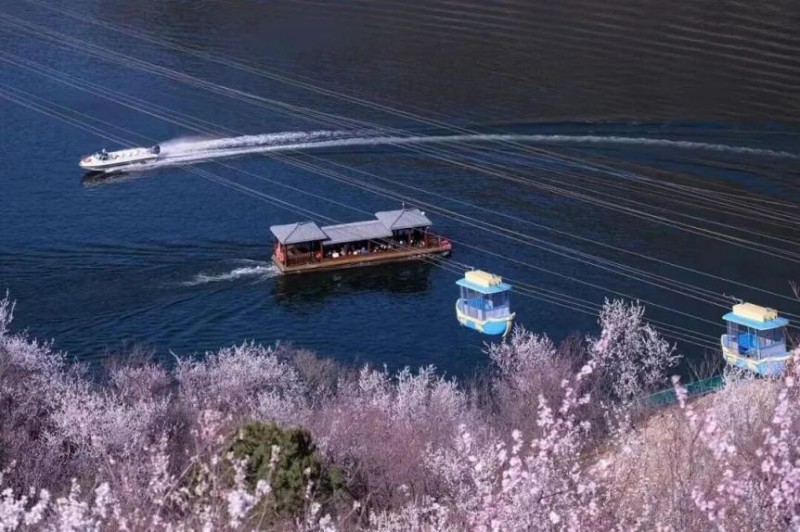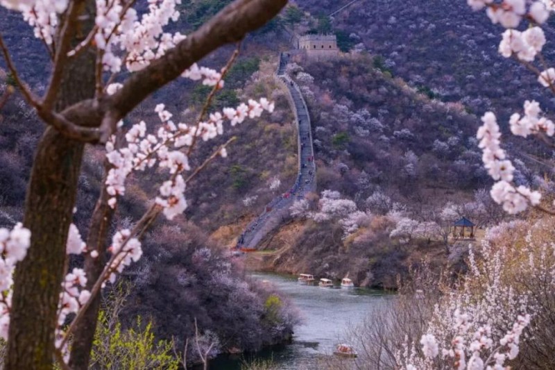 최근 쥐융관 꽃바다 잔도가 예정대로 개방되었다. 개복숭아꽃과 살구꽃이 만개해 온 산을 뒤덮었으며, 교외 철도 S2선이 꽃바다와 장성 사이를 가로지르며 '봄으로 달리는 열차' 절경을 그려낸다.
