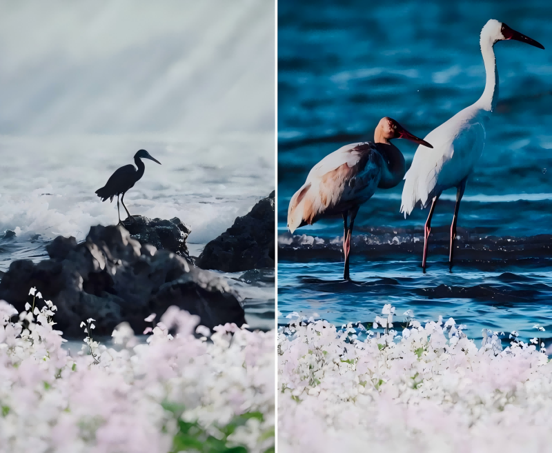 4월 초부터 5월까지 한스차오 습지공원(汉石桥湿地公园)에는 '남보라빛 물결'이 일렁거린다. 특히 탐조대 서측에 소래풀이 가장 많이 밀집해 있다.