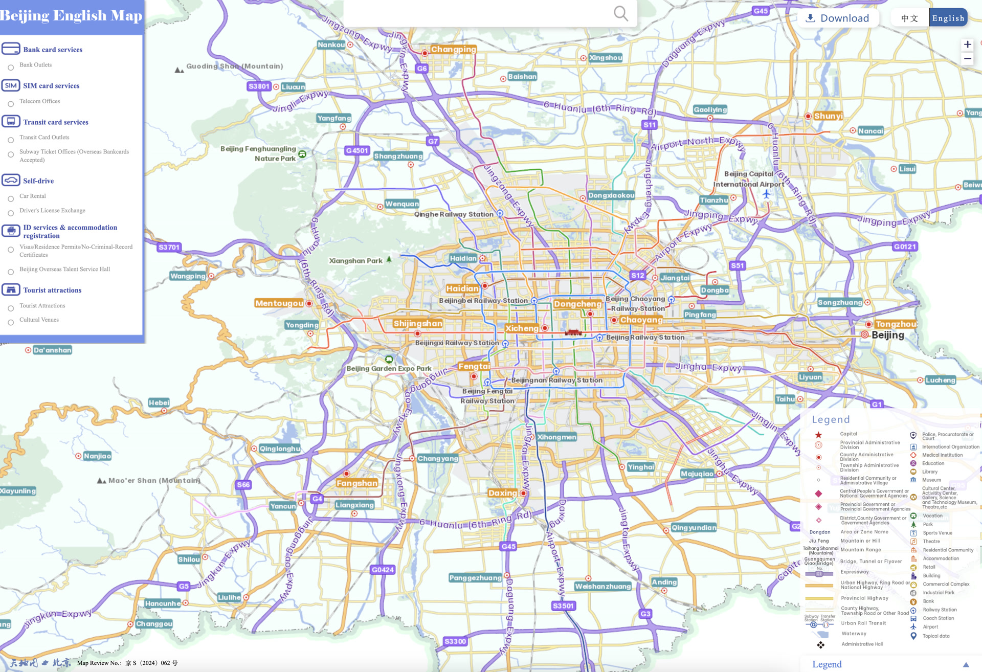 2025년 1월 22일, 베이징시 영문 지도가 베이징시 지리정보 공공서비스 플랫폼에 정식 업로드되었다.
