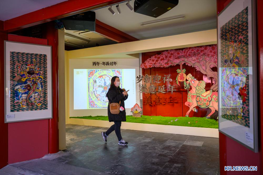4일 관람객이 전시된 연화(年畫)를 감상하고 있다.