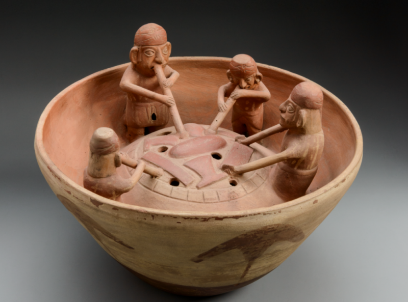 금속 제련 장면을 보여주는 도기